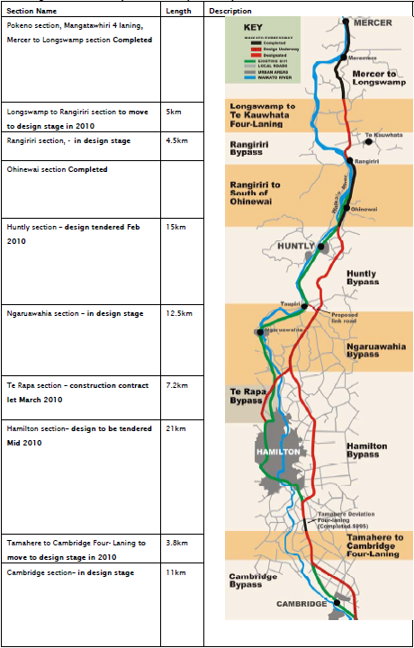 Figure 7 Waikato expressway sections as defined in March 2010