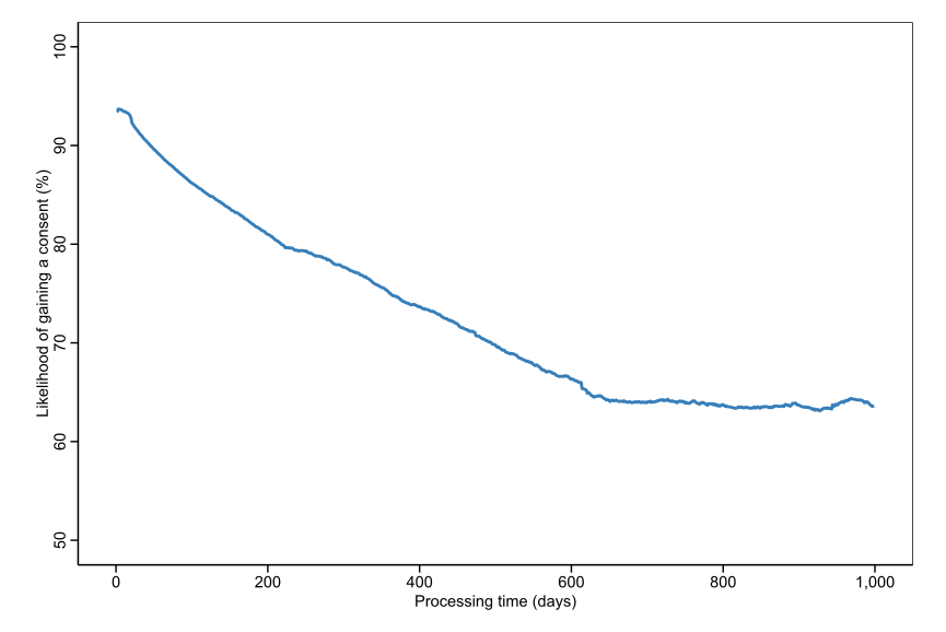38. This is based on the change in average likelihood of granting a consent for each activity status for the years 2005-2010 and 2010-2015↩︎